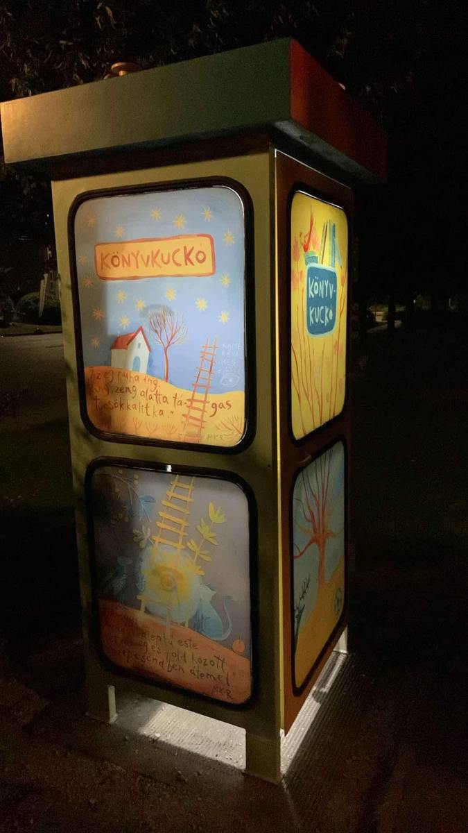 A 2019 óta üzemelő könyvkuckó felújítása Simonyi Cecília illusztrátor bevonásával, majd napelemes világítás kivitelezése.